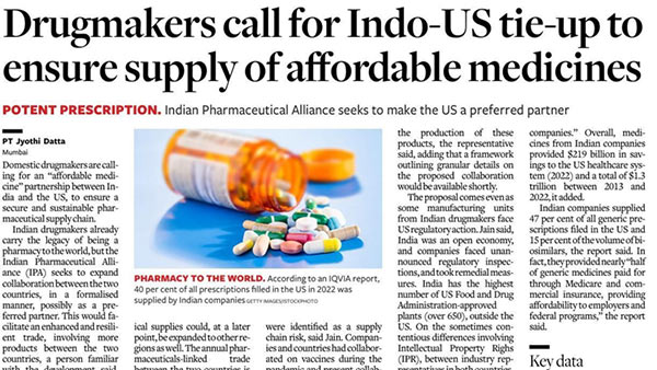 Domestic drugmakers call for Indo-US collaboration to ensure supplies of affordable medicines